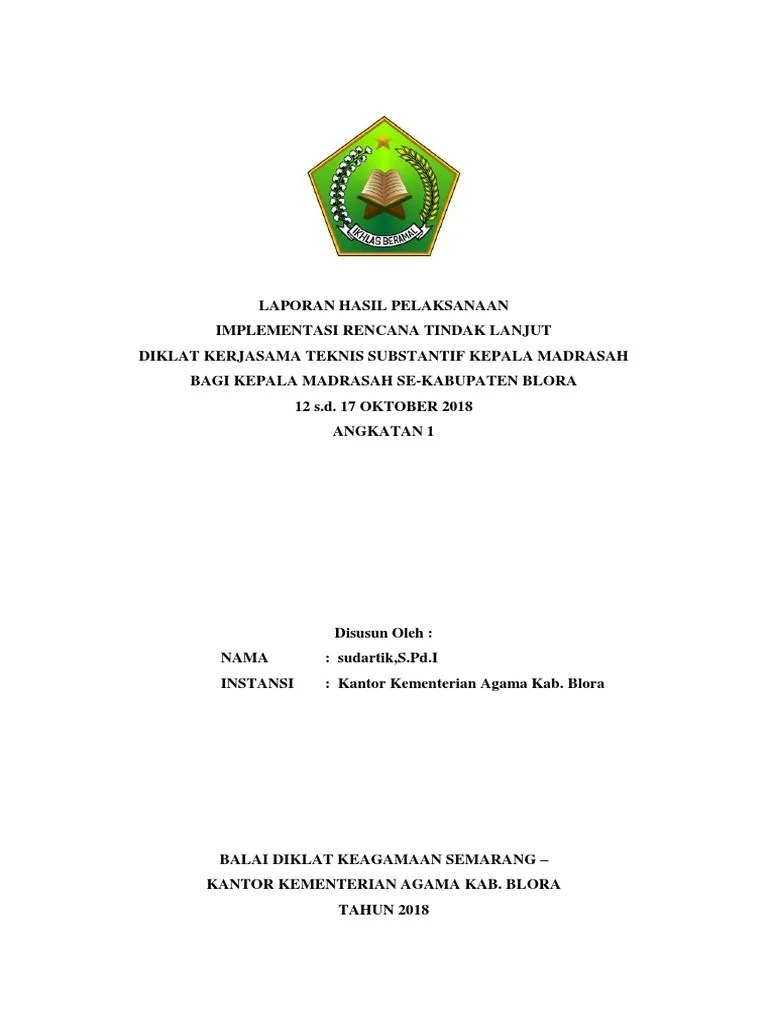 Pada pelaksanaan kurikulum 2013, setiap guru di setiap satuan pendidikan berkewajiban menyusun rpp untuk kelas di mana guru tersebut mengajar. Kurikulum 2013 menyusun rpp sesuai dengan tuntutan kurikulum 2013 . Laporan ini merupakan hasil pelaksanaan sistem penjaminan mutu. Laporan hasil pelatihan yang dibuat oleh guru yang bersangkutan terkait . Bagian awal a judul diklat yang diikuti :